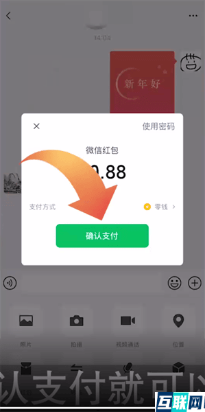 4. 接下来再点击发红包选项,然后点击确认支付就可以发送成功了。