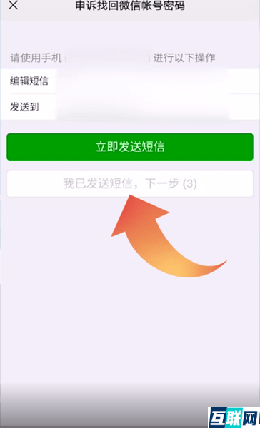 4. 4.输入微信号和可用手机号,点击下一步,按照要求发送短信,点击“我已发送短信,下一步”,通过验证之后即可申诉成功,