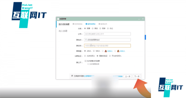 3. 3.输入群名称,选择好群规模再点击下一步,