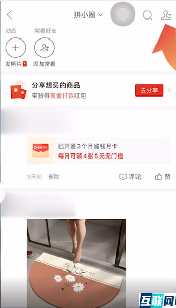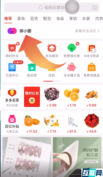 1. 1.想要查看关注的人在哪里的话,首先打开拼多多app,在首页即可看到左上角的“拼小圈”功能,