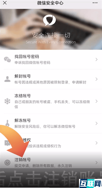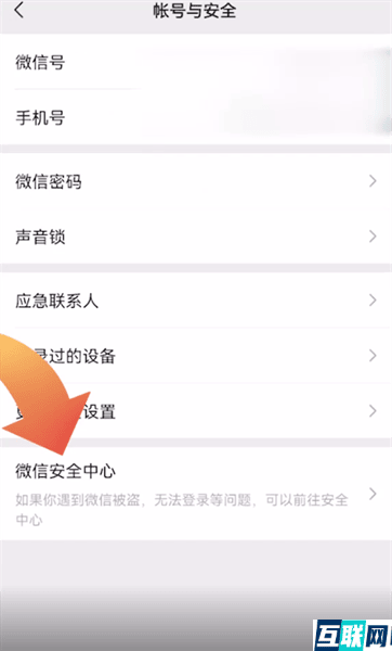 2. 2.这时点击账号与安全选项,接下来点击微信安全中心功能,