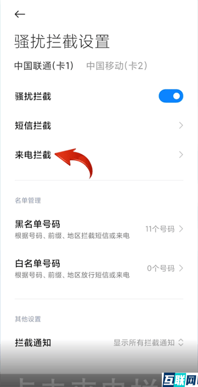 1. 2.小米手机默认会标记拦截各类推销骚扰电话,用户也可以在设置中主动拦截陌生电话和海外来电,点击来电拦截,并将拦截的电话类型取消选择即可解除相应电话的限制。