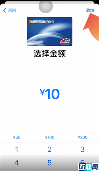 2. 2.这时再点击继续,选择需要的交通卡,输入充值的金额,然后再点击右上角添加选项,