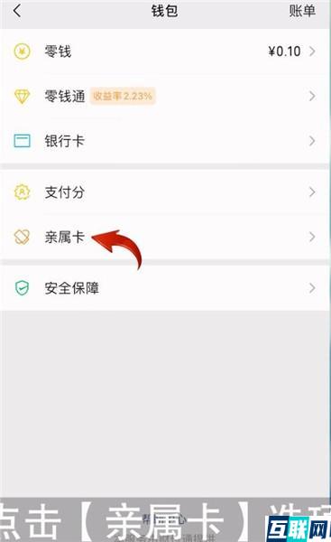 2. 接着点击【钱包】图标,点击【亲属卡】选项,