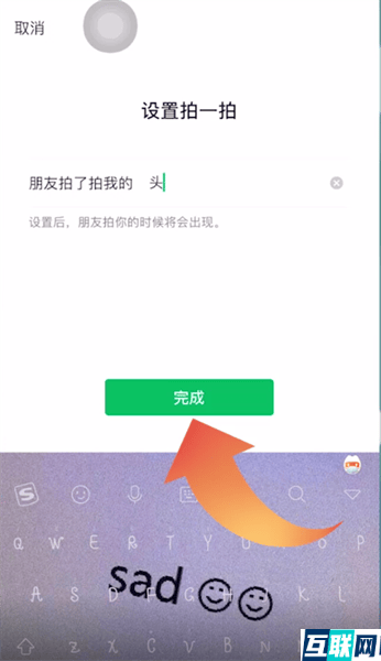 2. 2.然后点击拍一拍选项,输入文字再点击完成即可设置成功了。