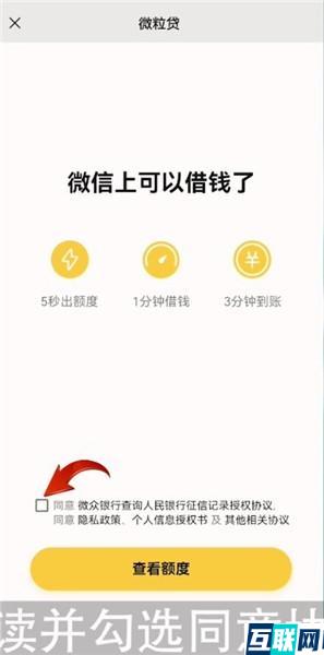 2. 接着在【金融理财】栏点击【微粒贷借钱】图标,阅读并勾选同意协议,点击下方的【获取额度】按钮,