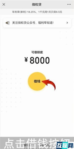 3. 再输入支付密码完成身份验证,进入微粒贷页面,点击【借钱】按钮,输入要借的金额,点击【下一步】按钮,最后根据页面提示完成借钱操作即可。