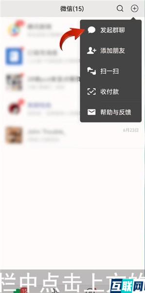 1. 首先打开【微信】客户端,进入微信的聊天列表页面,然后点击右上角的【+】按钮,在弹出的选项栏中点击上方的【发起群聊】选项,进入发起群聊的页面,