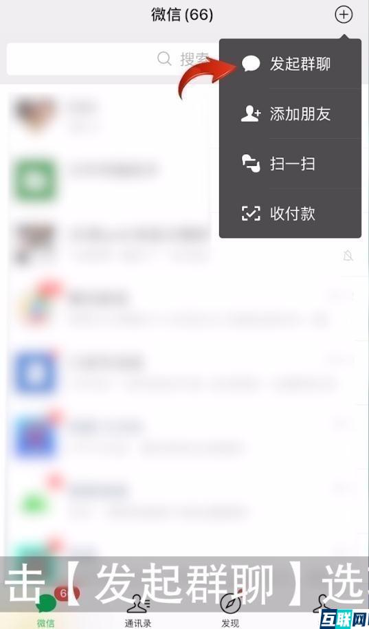 1. 首先打开【微信】客户端,然后点击右上角的【+】图标,点击【发起群聊】选项,进入选择联系人页面,