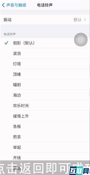2. 再选择一个喜欢的铃声,最后点击返回即可设置成功。