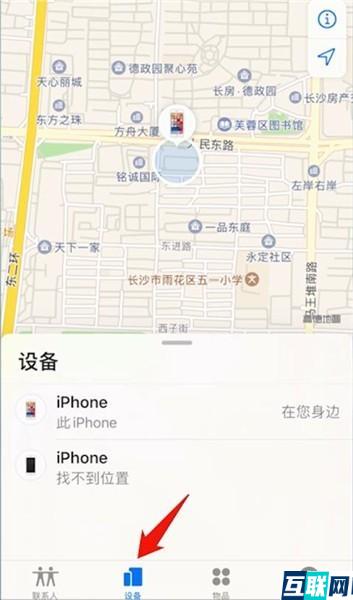 4. 如果两台设备登录的是同一账号,那么点击底部的【设备】栏,再点击另一台设备,就可以看到另一个手机的位置了;如果两台设备登录的不是同一账号,那么点击左下角的【联系人】图标,再点击【开始共享位置】选项,最后点击右上角的【+】按钮,在通讯录中选择要共享位置的好友,点击手机号码的位置,点击右上角的【发送】按钮,选择要共享的时长,再次点击右上角的【发送】按钮,最后等待好友接受你的邀请,就可以开始共享位置了。