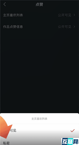 3. 3.在隐私页面点击点赞功能,再点击“主页喜欢列表”,接下来选择私密就可以了。