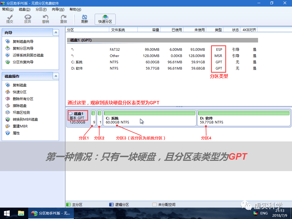 从以上图片中红色框框中圈出的位置上,我们可以准确辨别出硬盘的分区表类型。