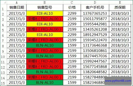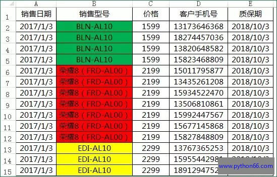那如果数据源已经确定,就如同下面这样一份数据,制作表格的人将销售型号分别填充了黄色、红色、绿色。