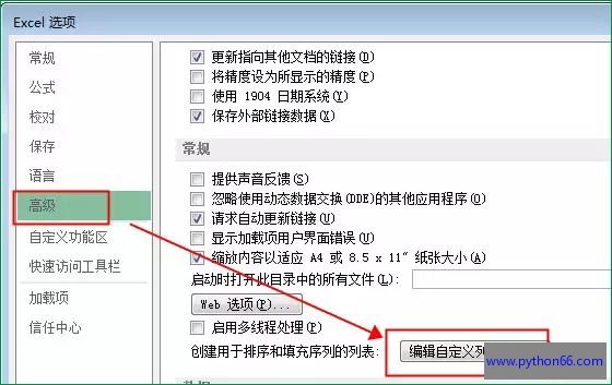方法:单击“文件——Excel选项——高级——编辑自定义列表”。