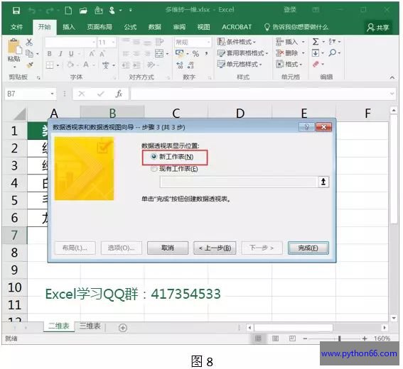 第四步:选择你改造后表格的位置,“新建工作表”或者“现有工作表”都可以,看您心情。这里我们选择 “新建工作表”。