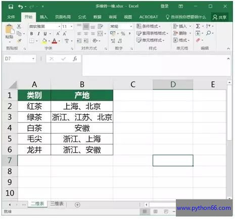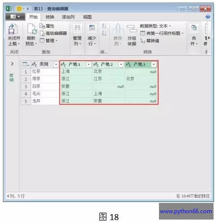第六步:此时,将变成如下图所示的表格。这里选中混合表中的产地区域。