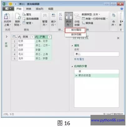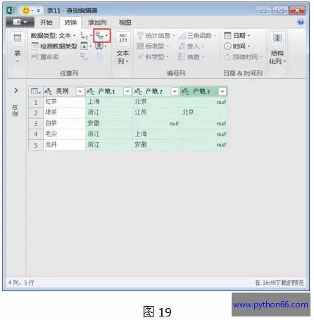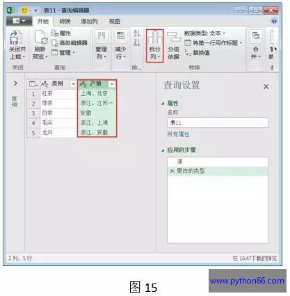 第三步:选中表格中多重数据的区域,如,“产地”列,单击“拆分列”按钮,如下图所示。