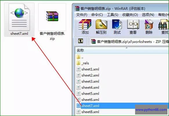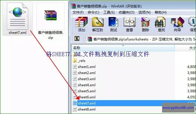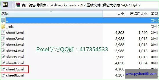 将删除了sheetProduction代码的sheet7.xml文件复制替换回压缩包里面。