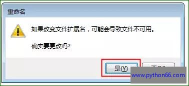 修改文件后缀的过程,会弹出下面的对话框,询问我们是否需要改变文件扩展名,咱们点击“是”即可。