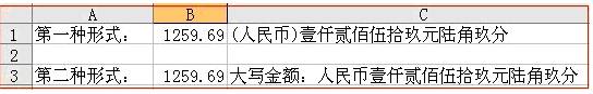 ="大写金额:"&IF(TRIM(B1)="","",IF(B1=0,"","人民币"&IF(B1<0,"负",)&IF(INT(B1),TEXT(INT(ABS(B1)),"[dbnum2]")&"元",)&IF(INT(ABS(B1)*10)-INT(ABS(B1))*10,TEXT(INT(ABS(B1)*10)-INT(ABS(B1))*10,"[dbnum2]")&"角",IF(INT(ABS(B1))=ABS(B1),,IF(ABS(B1)<0.1,,"零")))&IF(ROUND(ABS(B1)*100-INT(ABS(B1)*10)*10,),TEXT(ROUND(ABS(B1)*100-INT(ABS(B1)*10)*10,),"[dbnum2]")&"分","整")))