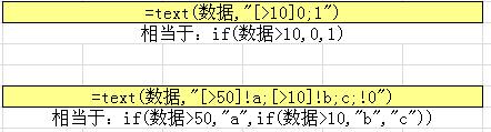 text很经典的用法就是在条件判断方面。因为可以省字符,数组公式中常用。条件需要用中括号括起来。这时,分号的作用就不是隔开正数、负数、零了。条件判断的顺序,是先左后右,如同if函数一样。