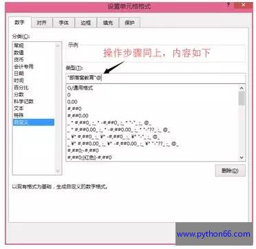 如果数据中含有固定的文本,比如前几个字都是“部落窝教育课程”,那么我们也可以在这个自定义的“类型”输入框中输入“"部落窝教育"@”。以后输入时这几个字也就可以自动添加了。