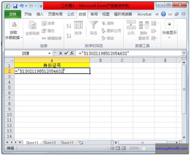 在需要输入身份证号码的单元格中首先输入 =””(在英文状态下),接着在双引号中间位置输入身份证号码,这样才能正常地显示身份证号码。