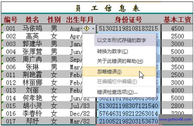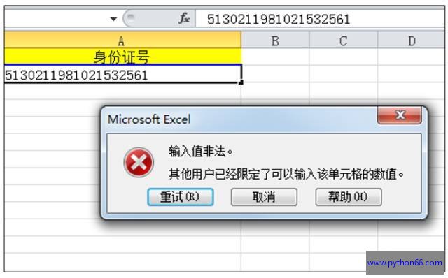 因此,当输入身份证号、银行卡号这样较长的数据时,Excel默认以数字来存储,就会出现上述错误。