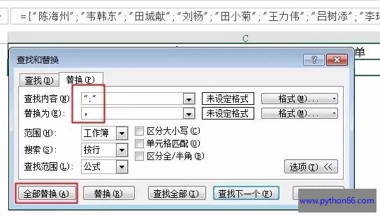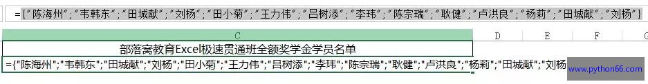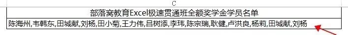 咱们需要用excel把这些姓名合并成C2单元格所示的样子: