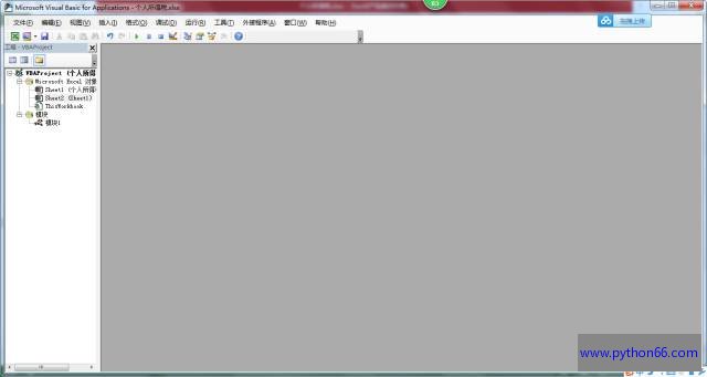 点击“开发工具——代码——Visual Basic”打开Visual Basic窗口,或用组合键“alt+f11”打开Visual Basic窗口,打开如下图所示的窗口。