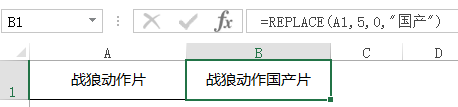 函数的意思是:A1单元格的字符,从第5个字符起,将0个字符替换成“国产”。相当于在第5个字符之前插入了文字“国产”第三参数文本)。