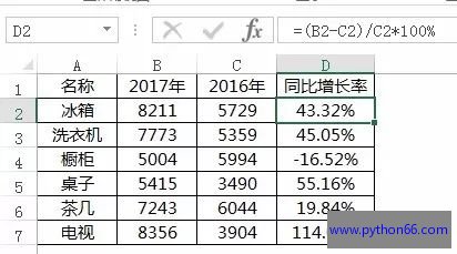 同比增长率计算