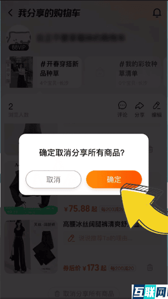 3. 点击底部【取消分享所有商品】,点击【确定】就可以了。