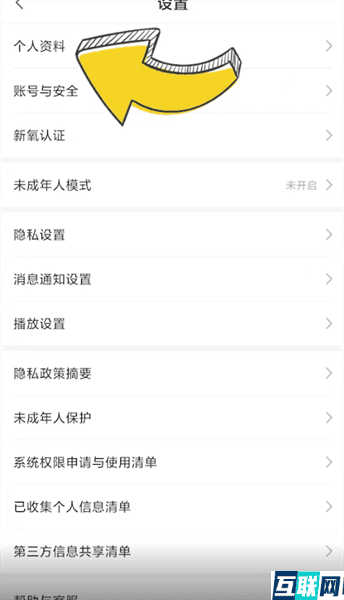 2. 点击页面左上角设置图标,选择【个人资料】,