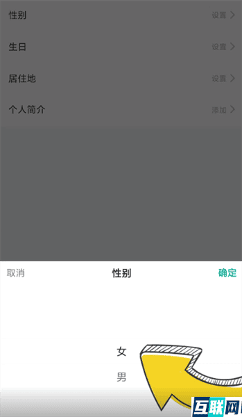 3. 点击【性别】,选择需要修改的性别,再点击【确定】就可以了。