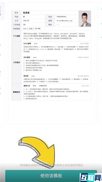 3. 选择一个简历模板,点击【使用该模板】,再点击【保存】就可以生成附件简历了。