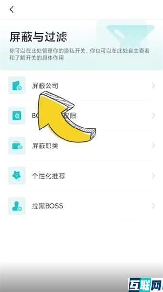 2. 点击【屏蔽与过滤】,选择【屏蔽公司】,