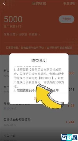 2. 点击【金币余额】,再点击页面右上角【收益说明】,就可以查看兑换折现的明细了。