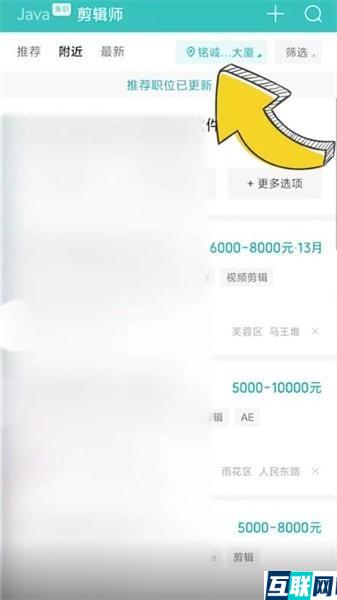 1. 首先打开boss直聘,点击页面上方的【附近】,再点击右侧的定位,
