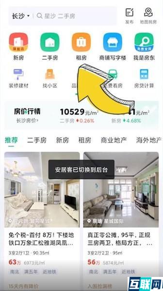 1. 首先打开安居客,点击【租房】,
