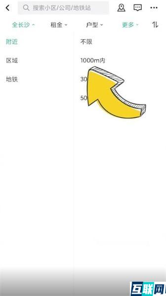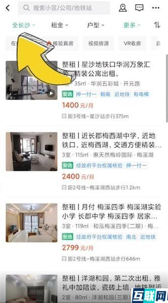 2. 选择租房的类型,点击页面左上角的区域,