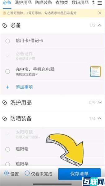 您的位置: 网站首页> 大家问> 当前文章 携程出行清单怎么添加 老董2023-10-18155围观,108赞 1. 首先打开携程旅行,点击页面底部【我的】, 2. 点击我的工具右侧的【全部工具】,点击【出行清单】, 3. 添加出行用品,再点击【保存清单】就可以了。 很赞哦! python编程网提示:转载请注明来源www.python66.com。有宝贵意见可添加站长微信(底部),获取技术资料请到公众号(底部)。同行交流请加群 上一篇:迅雷私人空间怎么看 下一篇:携程优惠券怎么使用 相关文章 vivo屏幕失灵怎么强制关机 实用工具箱如何进行图片信息修改 航旅纵横客服在哪里找 苹果手机电池容量怎么看 如何申请一码通 快捷指令怎么设置 懂球帝怎么设置挂件 快影不透明度怎么调 文章评论 携程出行清单怎么添加文章写得不错,值得赞赏 最新文章 浏览器指纹大全 Jenkins安全最佳实践包括哪些关键方面? Jenkins中如何实现代码部署的自动化? 在Jenkins中如何配置和使用构建流水线? 如何在Jenkins中管理和处理构建失败? 如何在Jenkins中实现构建任务的自动化触发? 推荐阅读 红米手机文件管理在哪里 一嗨租车怎么租车 如何在Java程序中预防死锁 DolphinScheduler的机器学习任务调度有哪些功能和优 Java中如何正确使用wait()和notify()方法? 标签云 通俗深刻 小白福利 互联网随笔 编程技术博客 猜你喜欢 vivo屏幕失灵怎么强制关机 实用工具箱如何进行图片信息修改 Android中SQLite数据库优化策略有哪些? Golang中如何实现函数的可变参数? Spring Cloud如何支持国际化和本地化? 站点信息 网站程序:Laravel 客服微信:a772483200