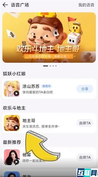2. 点击【语音广场】,选择喜欢的语音包,点击【选择TA】就可以了。
