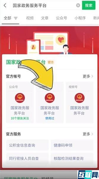 2. 输入并搜索国家政务服务平台,点击该小程序进入,