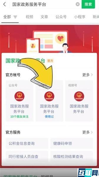 2. 输入并搜索国家政务服务平台,点击该小程序进入,