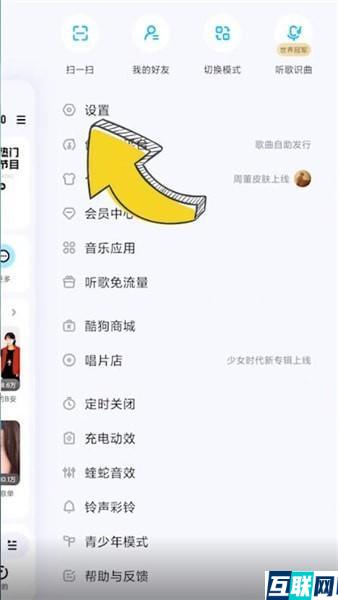 1. 首先打开酷狗,点击右上角三条横线,点击【设置】,