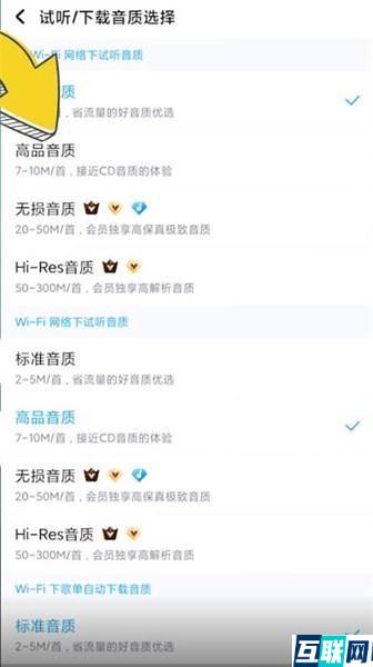 2. 点击【试听/下载音质选择】,选择想要的音质并点击就可以设置成功了。