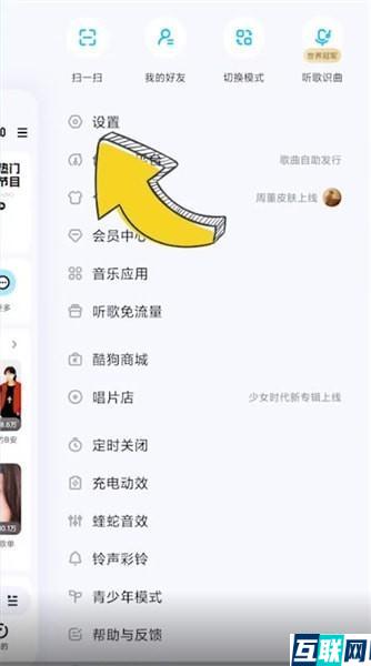 1. 首先打开酷狗,点击右上角三条横线,点击【设置】,