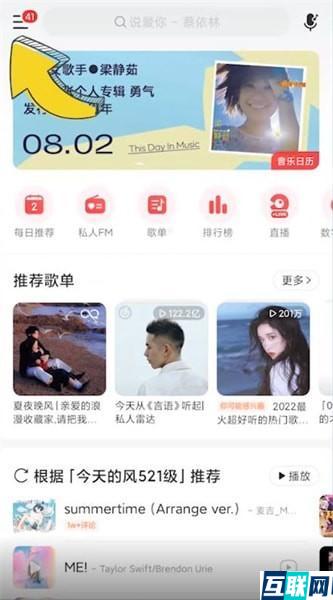 1. 首先打开网易云音乐,点击左上角三条横线,